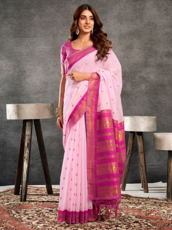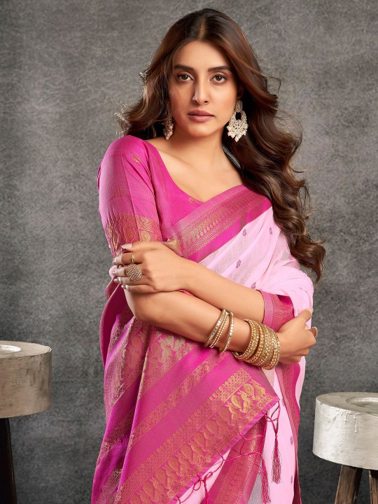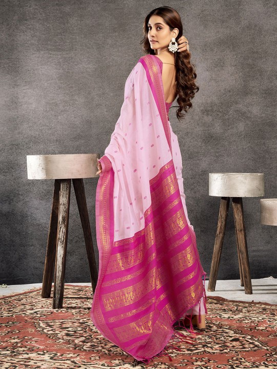 Ethnic Motifs Zari Pure Cotton Banarasi Saree