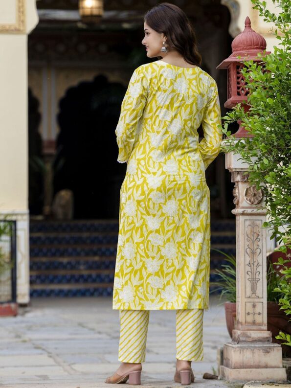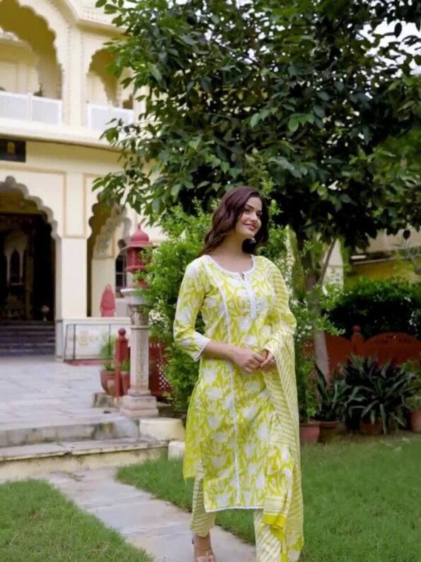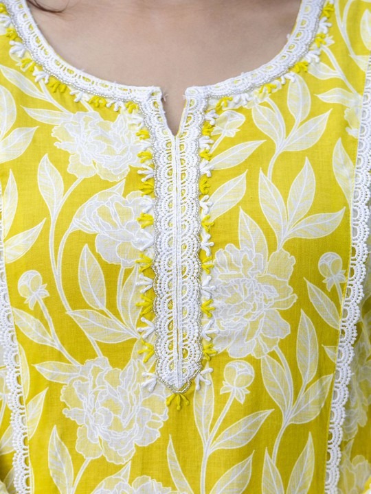 Yellow and White embroidered Kurta with Trouser & dupatta