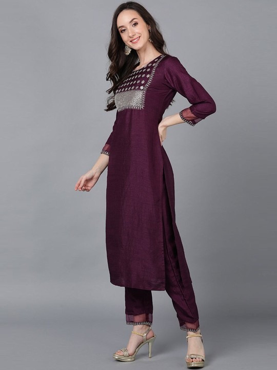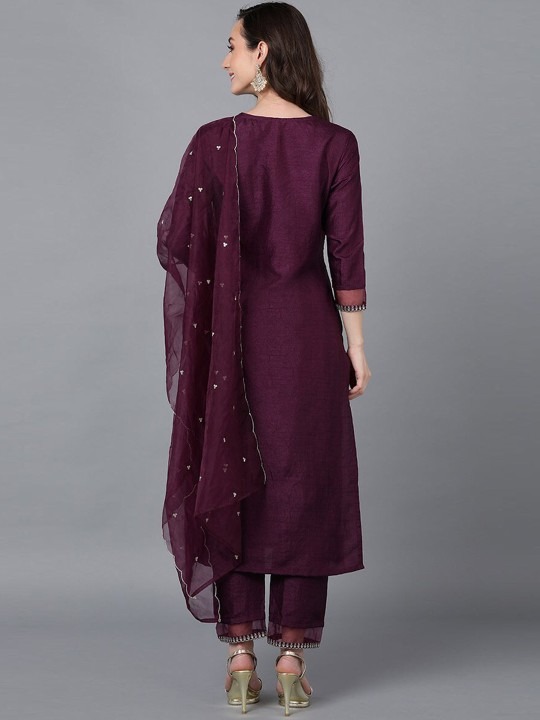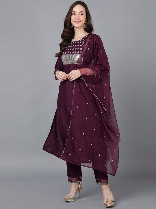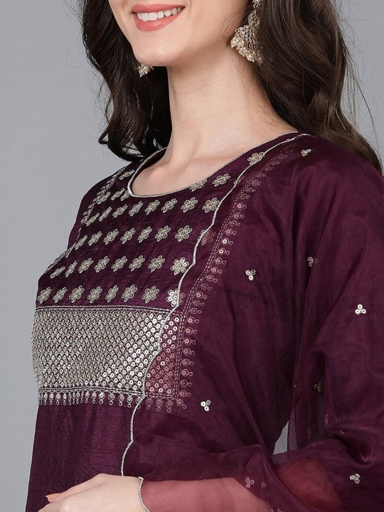 Floral Embroidered Regular Sequinned Kurta with Trousers & With Dupatta