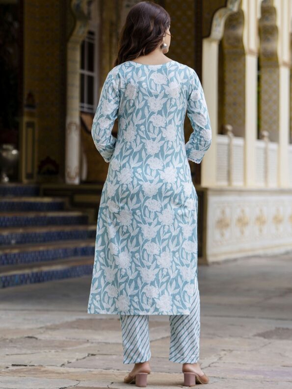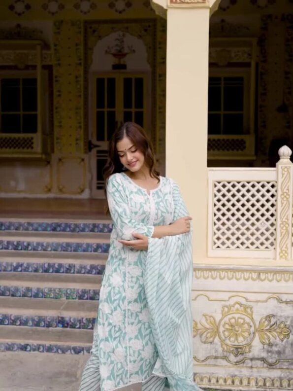 Floral Embroidered Regular Thread Work Pure Cotton Kurta with Trouser & Dupatta
