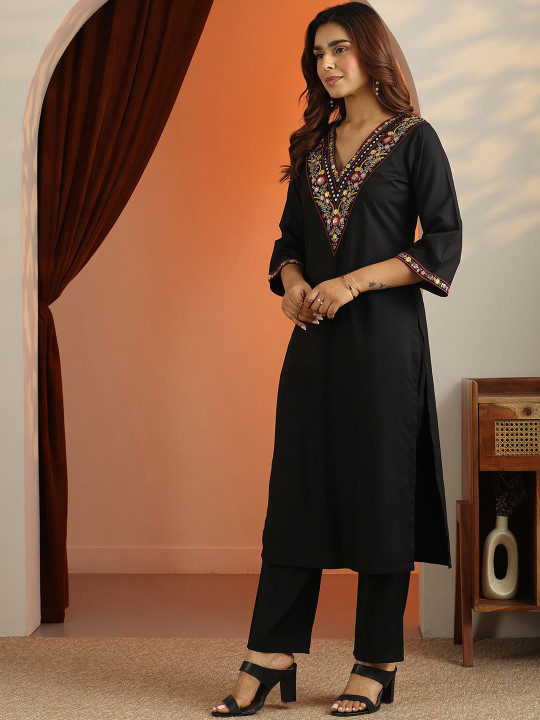 Grace meets elegance in this beautifully crafted floral embroidered straight kurta set. Designed with a flattering V-neck and paired with matching trousers and a coordinated dupatta, this ensemble offers the perfect blend of comfort and sophistication. Ideal for festive occasions, office wear, or casual gatherings. 🌸