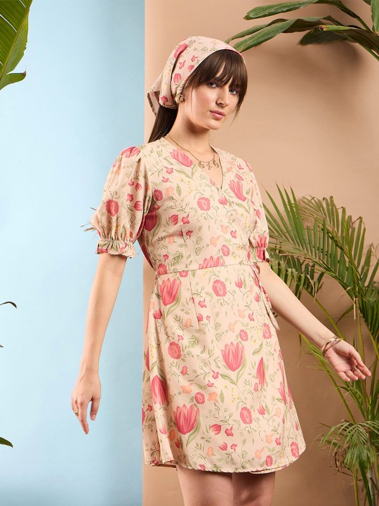 Be the first to review “Floral Print Puff Sleeve Wrap Dress” Cancel reply