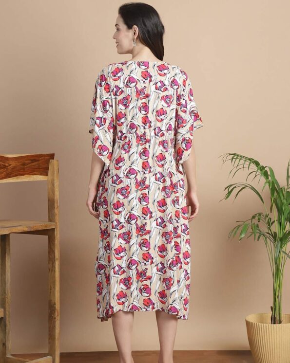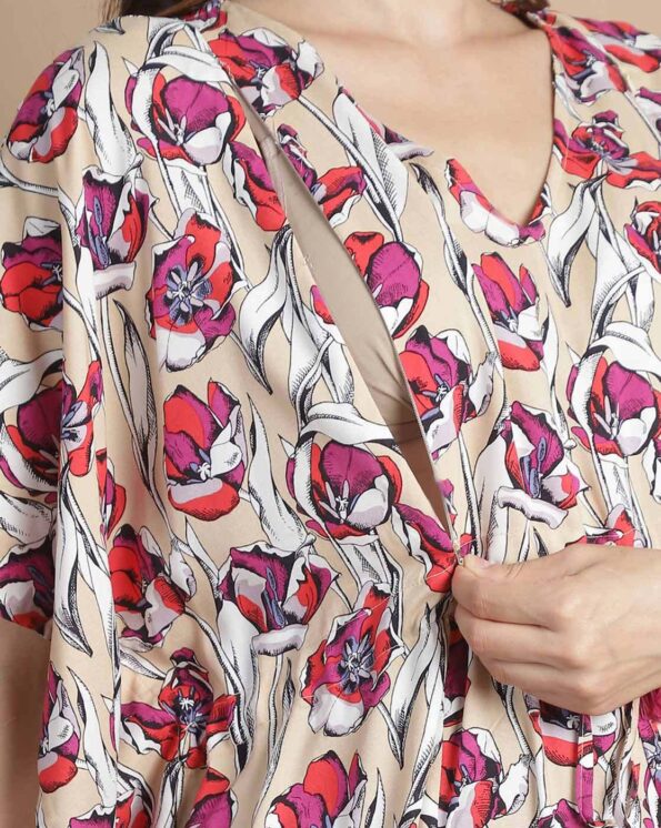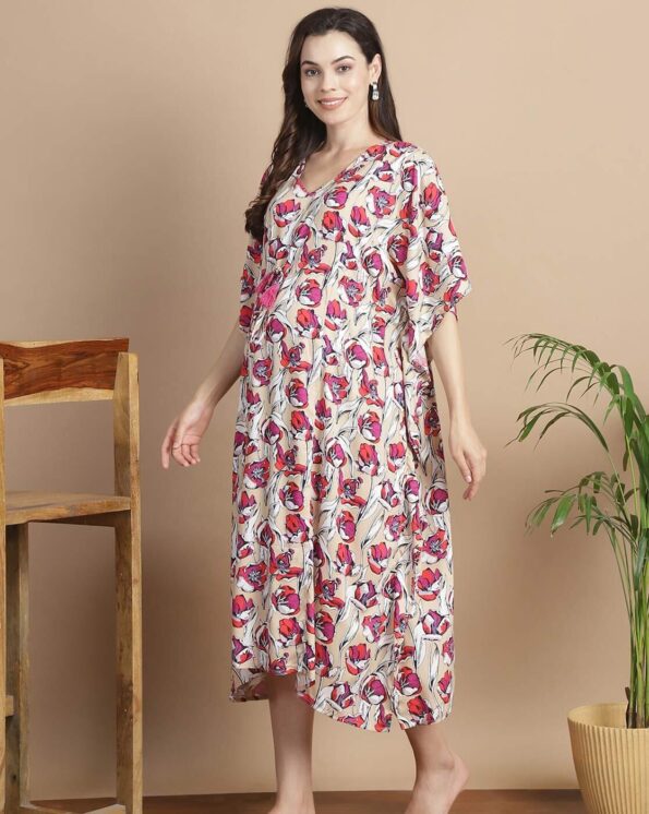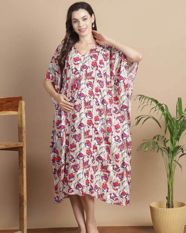 Maternity-Friendly Kaftan Design: This feeding nighty with zipper features a loose and flowy kaftan silhouette, offering a comfortable and accommodating fit for all stages of pregnancy.