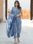Floral Printed Empire Sequinned Anarkali Pure Cotton Kurta ,Trousers & Dupatta