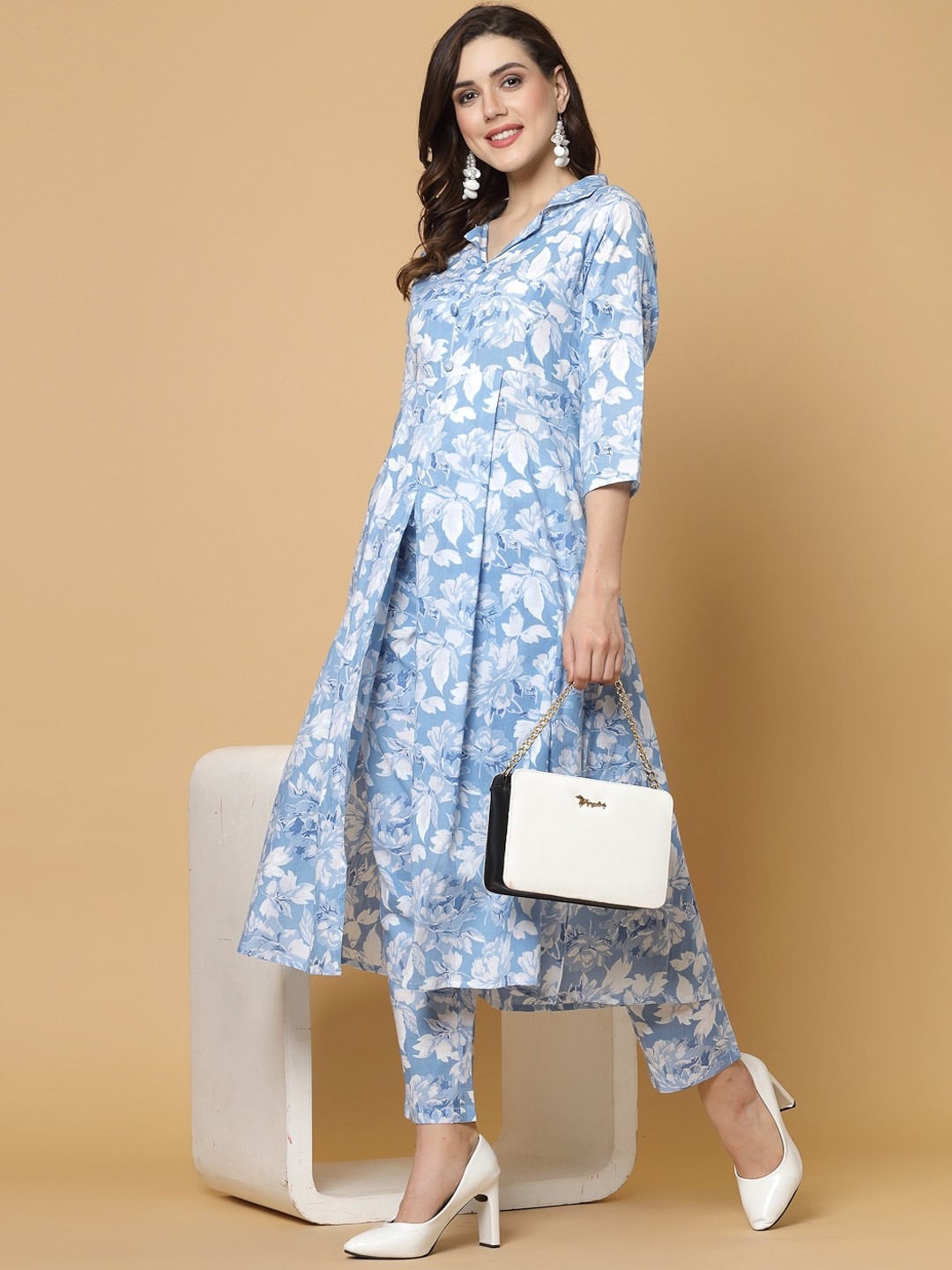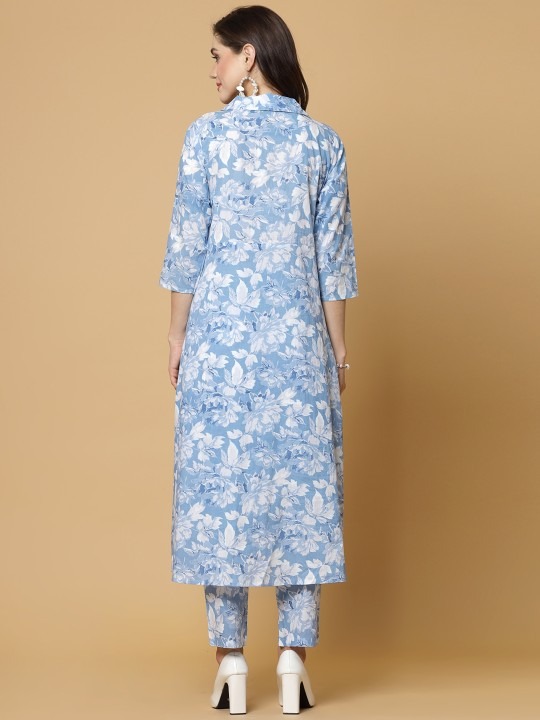 Floral Printed High Slit Pure Cotton Kurta with Trousers