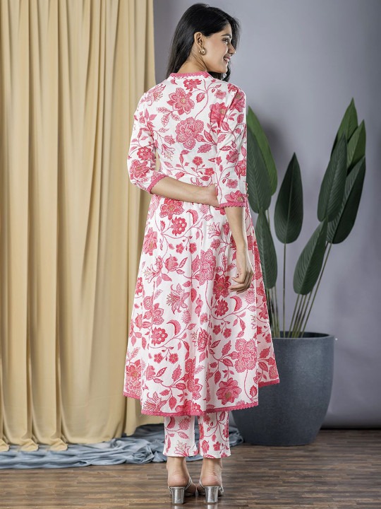Floral Printed Panelled Pure Cotton Kurta with Trouser
