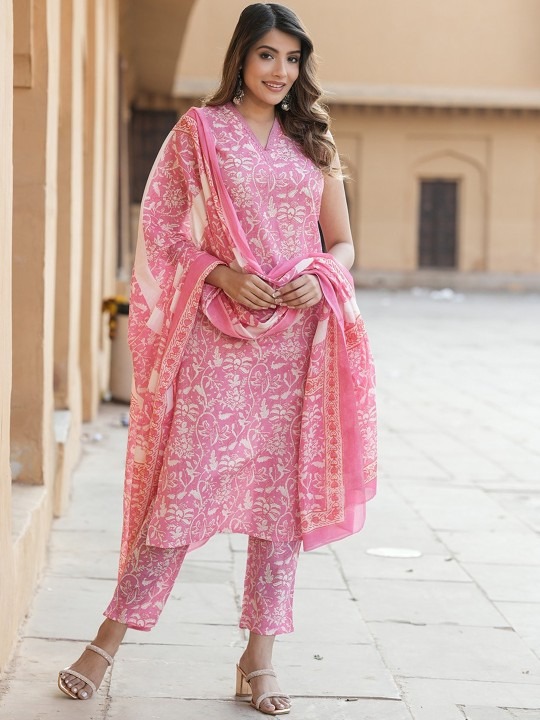 Be the first to review “Floral Printed Regular Pure Cotton Kurta with Trousers & With Dupatta”