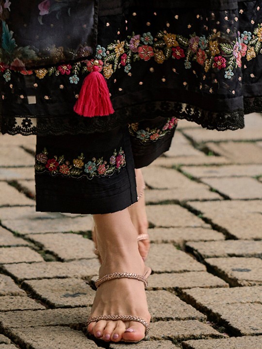 Black, pink & green yoke design Kurta with Trousers with dupatta