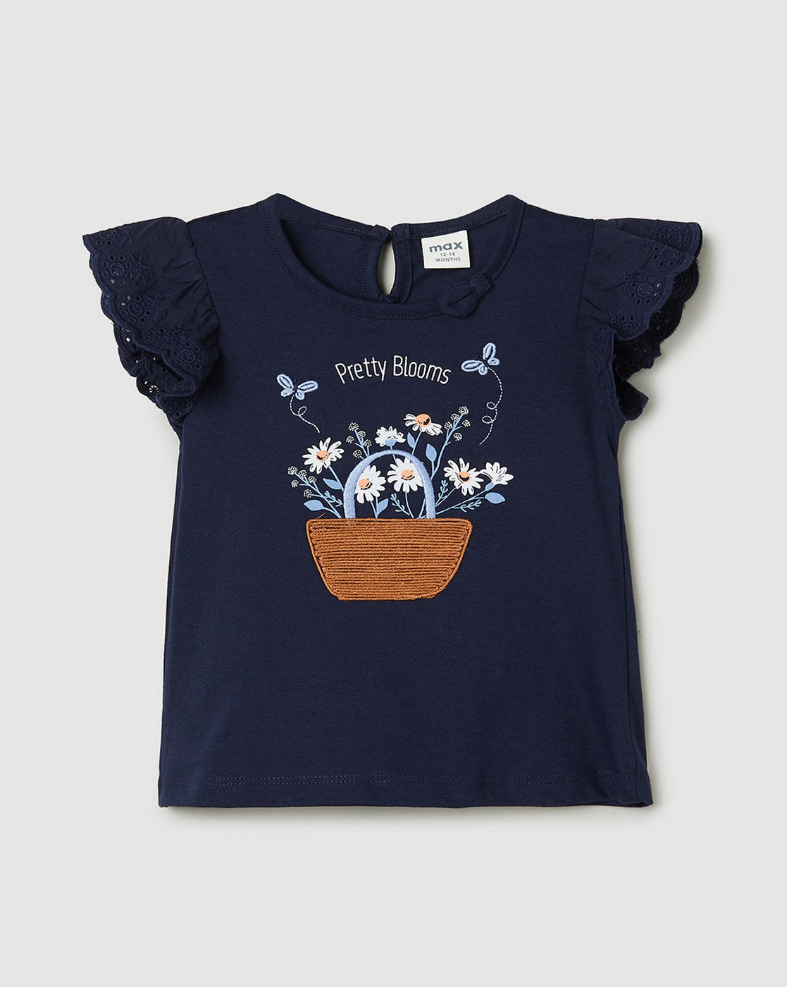Girls Embroidered Top with Schiffli Sleeves