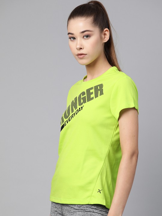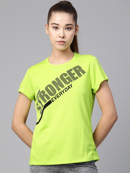 HRX By Hrithik Roshan Green Printed Rapid Dry N9 Antimicrobial Technology Training T-shirt