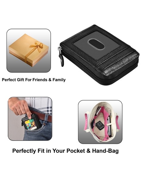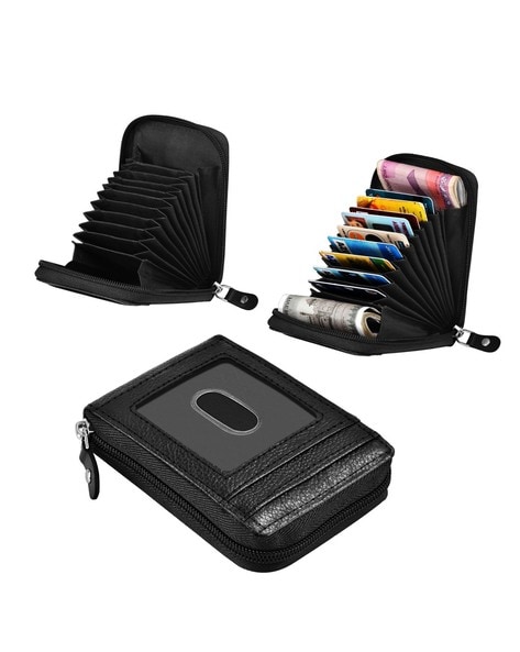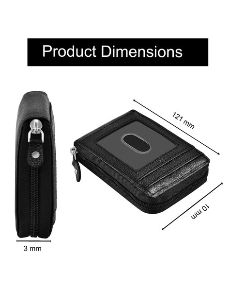 Wallet features: There are 8 credit card slots, 1 transparent Id window, with zipper closure & RFID protection.