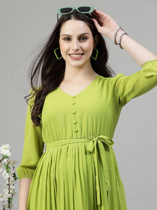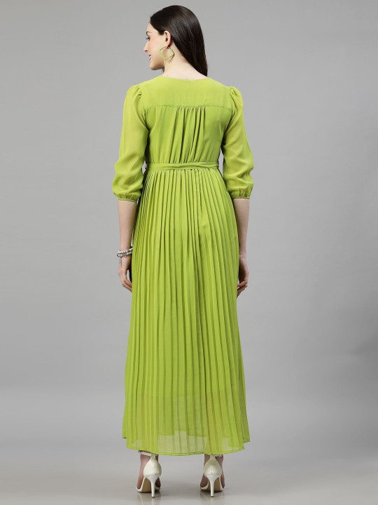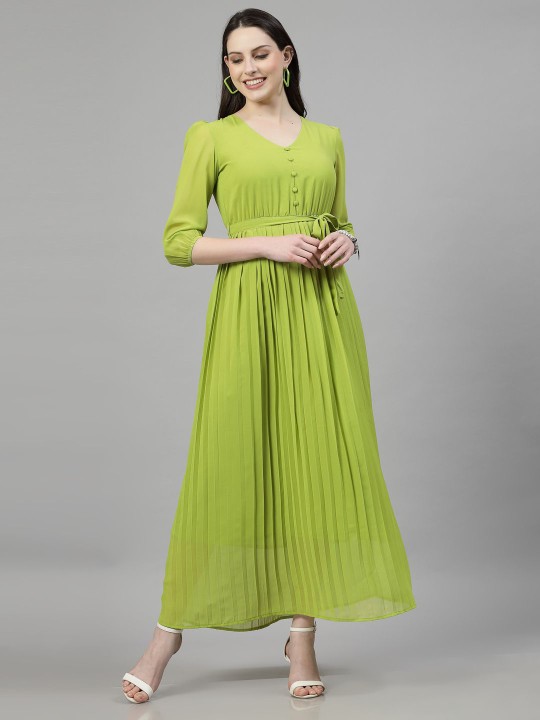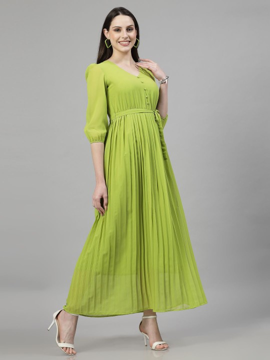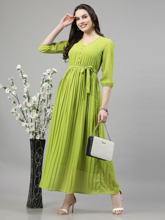 Georgette Round Neck Fit & Flare Maxi Casual Dress