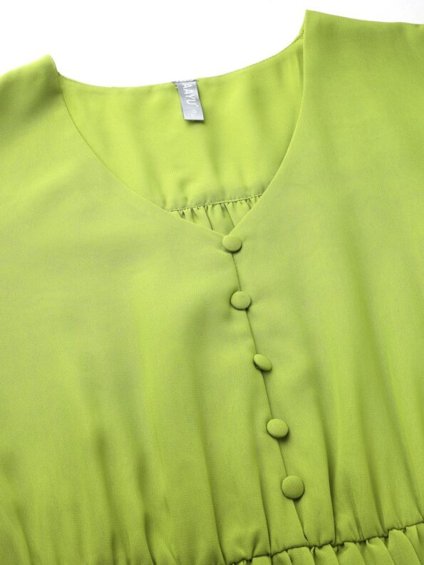 Self Design Mandarin Collar Gathered Tiered Georgette A-Line Midi Dress