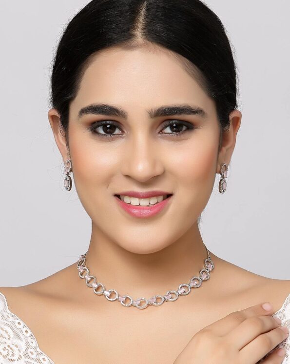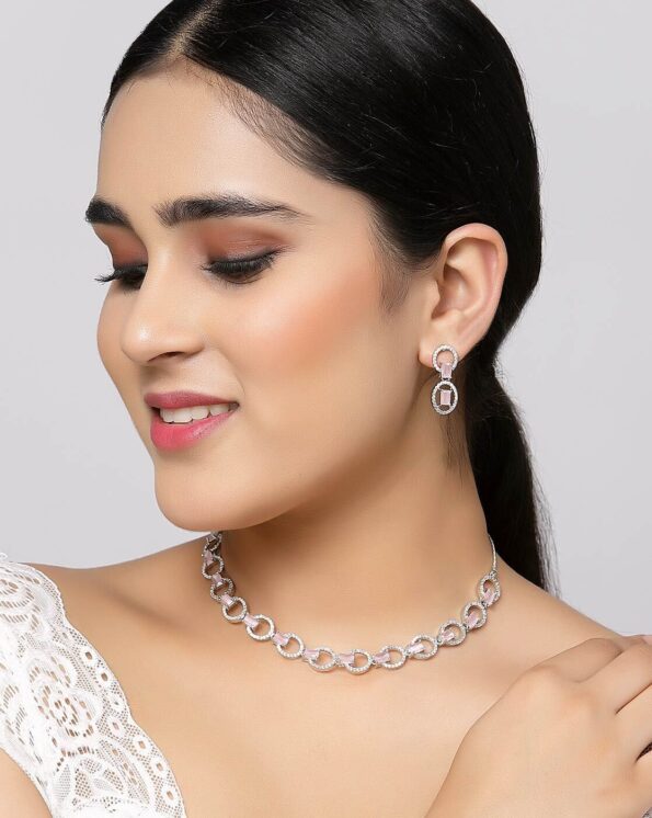 Be the first to review “Rhodium-Plated American Diamond-Studded Necklace & Earrings Set” Cancel reply
