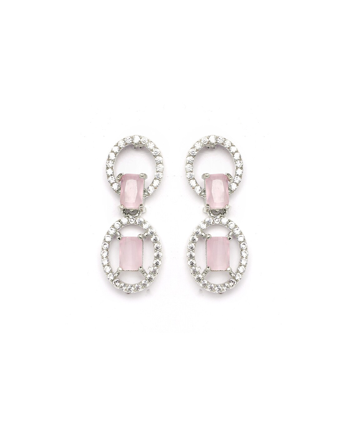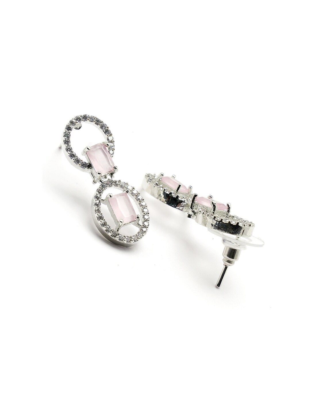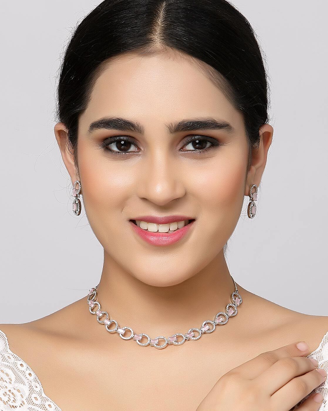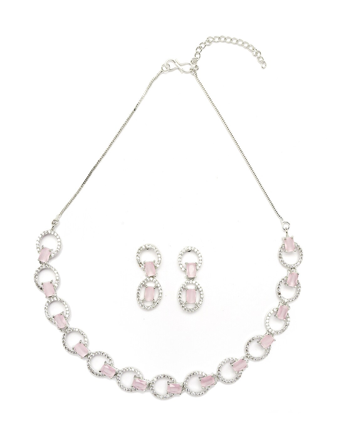 Rhodium-Plated American Diamond-Studded Necklace & Earrings Set
