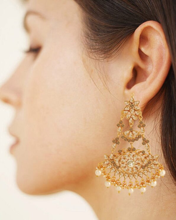 Be the first to review “Stone-Studded Dangler Earrings with Bead Drops” Cancel reply