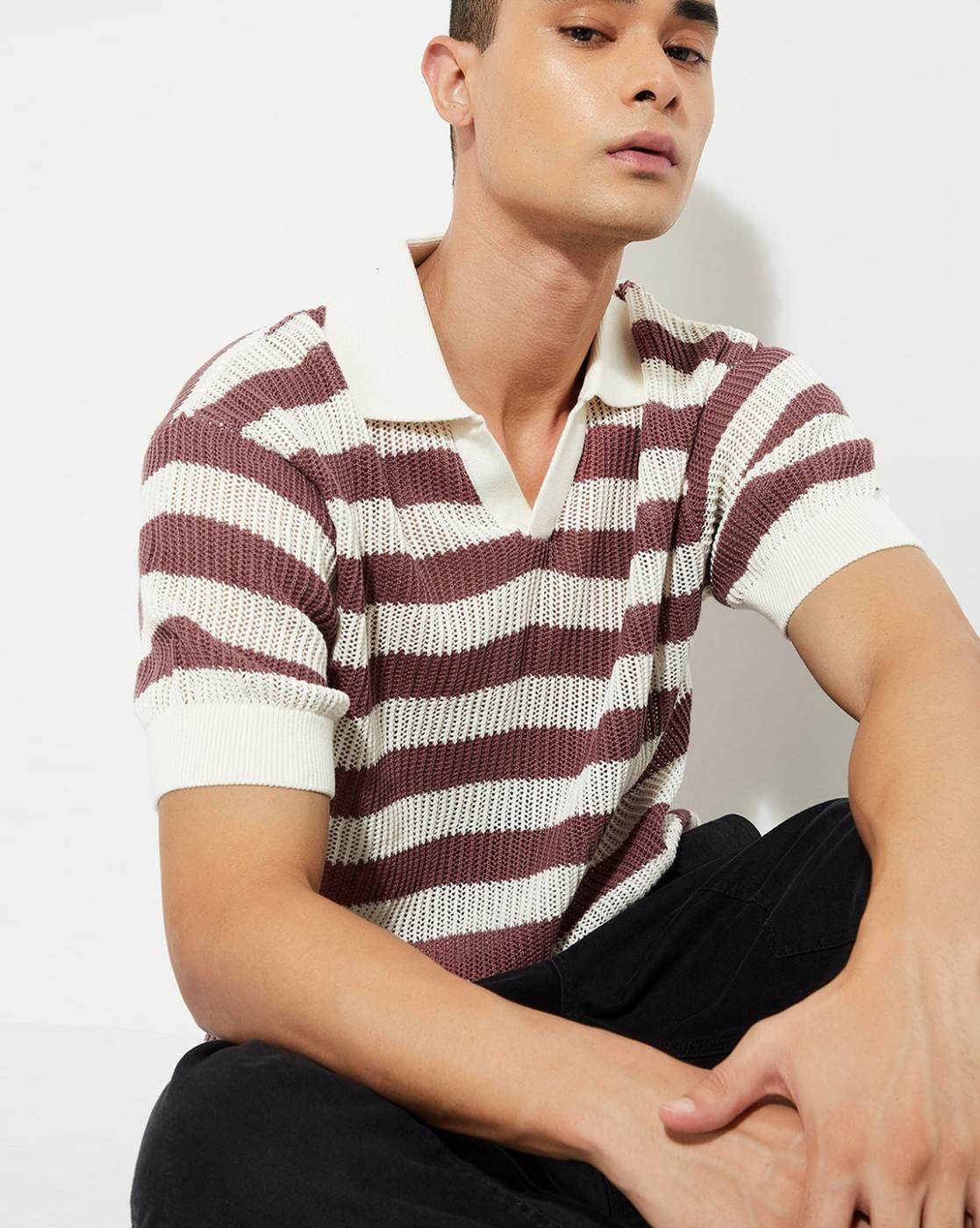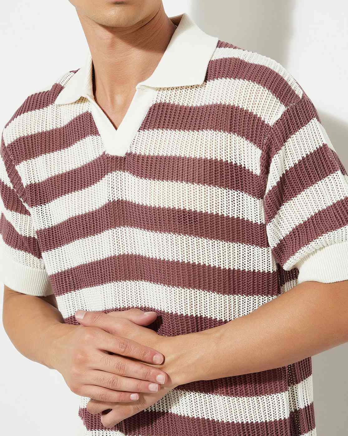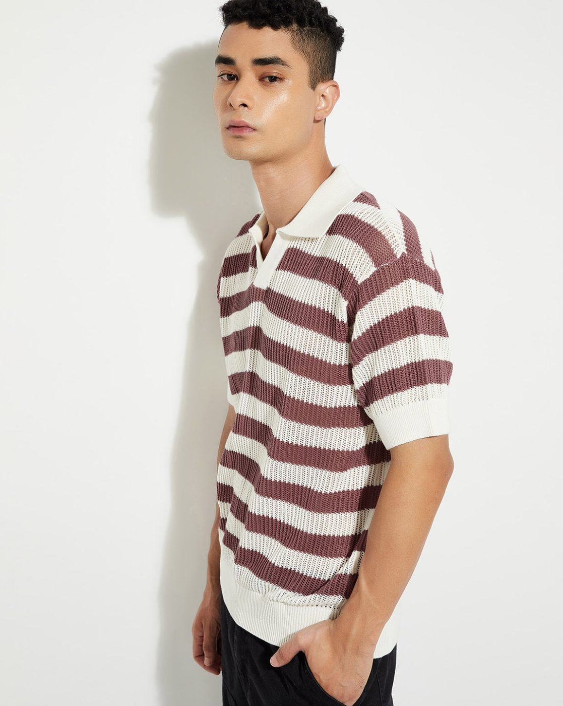 URB_N Men Striped Knit Oversized Polo T-Shirt