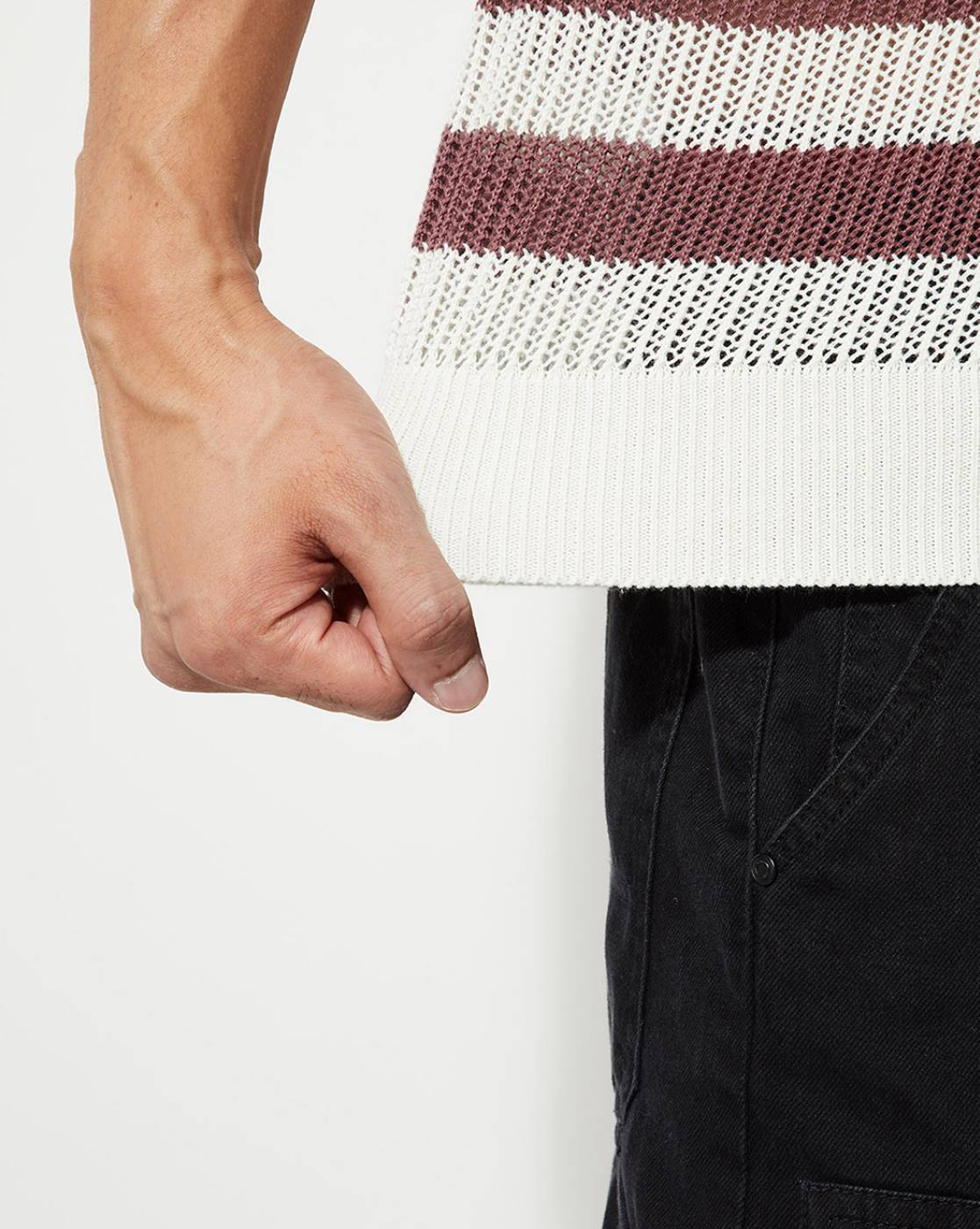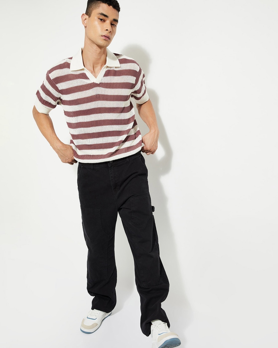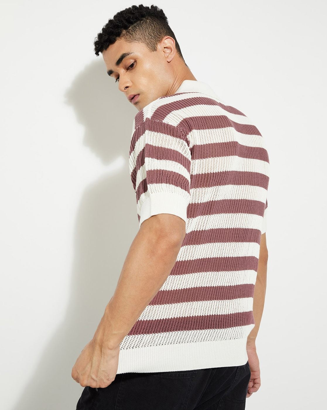 URB_N Men Striped Knit Oversized Polo T-Shirt