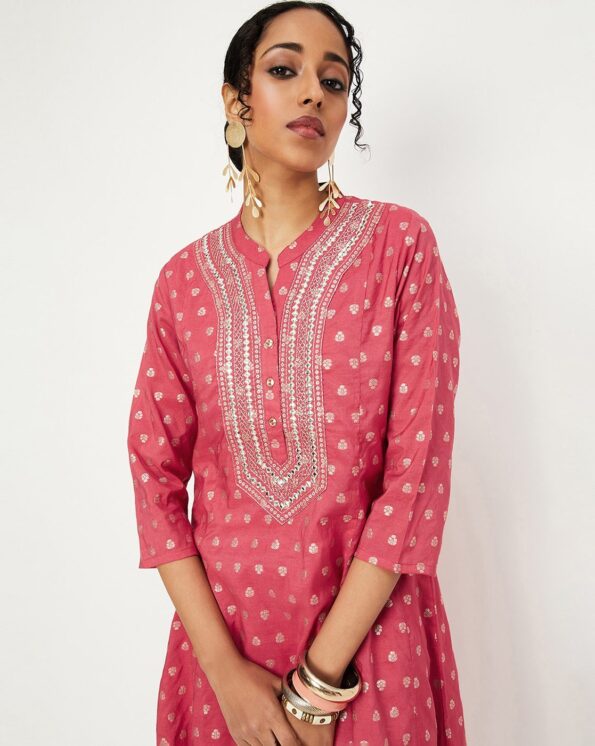 • Women Embroidered A-Line Kurta