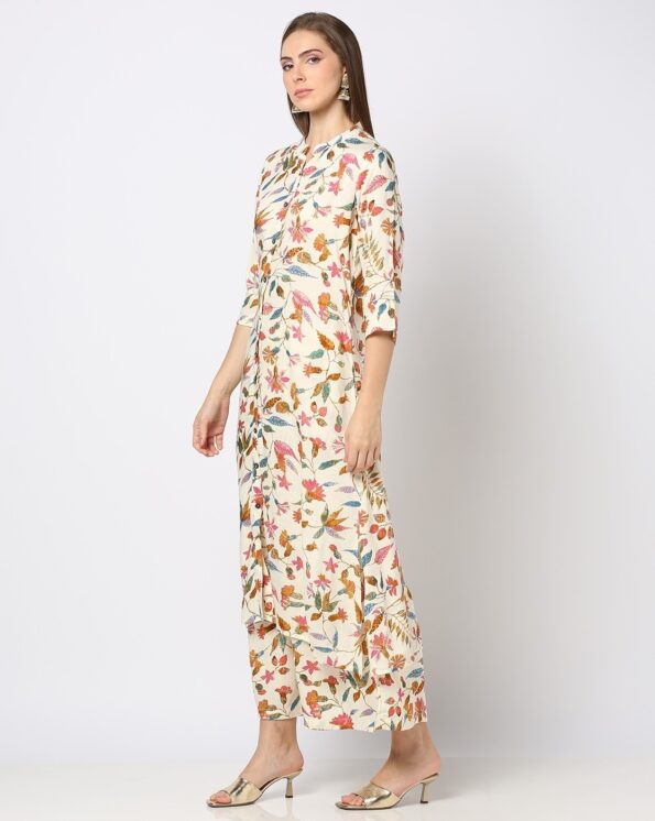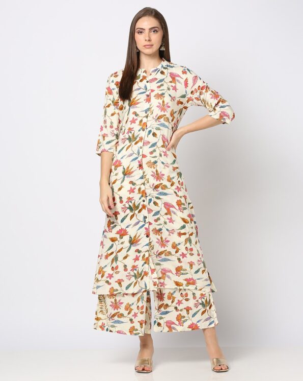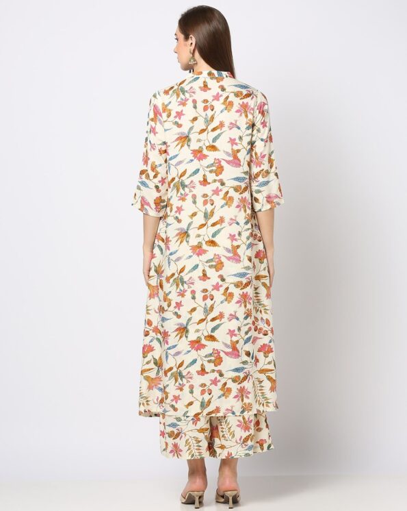 Floral Printed Pure Cotton Straight Kurta with Trousers & Dupatta