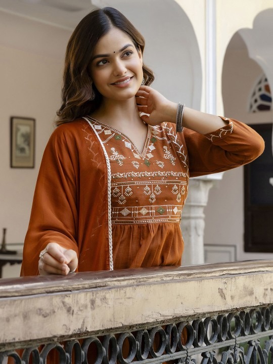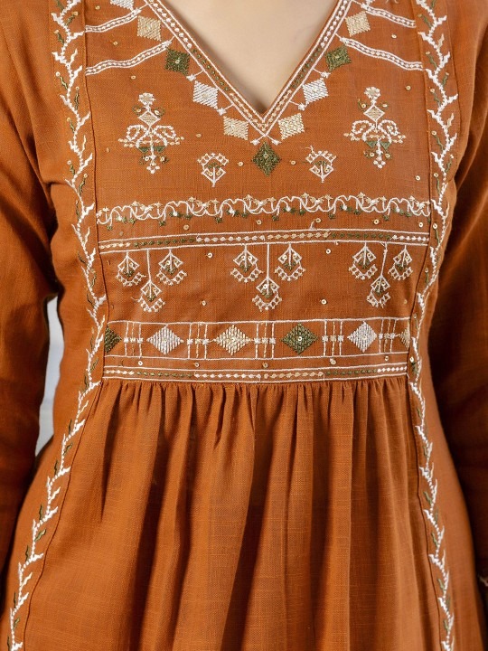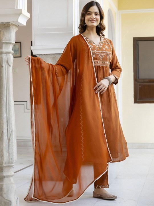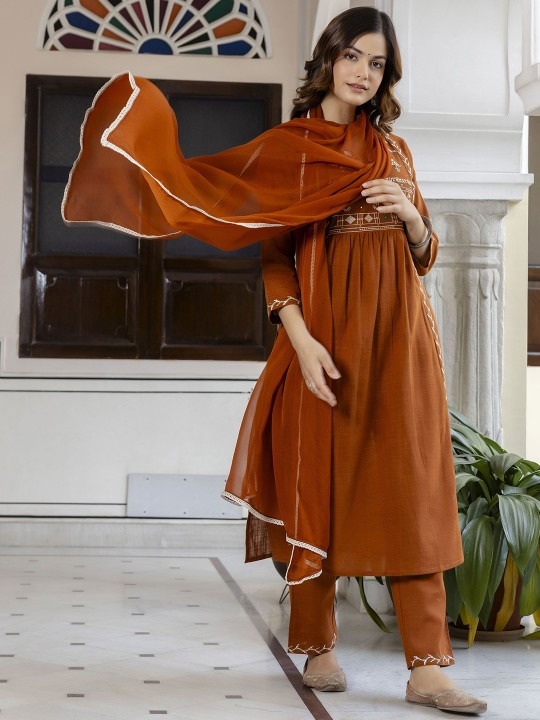 Women Ethnic Motifs Embroidered Aari Work Cotton Kurta with Trousers & With Dupatta