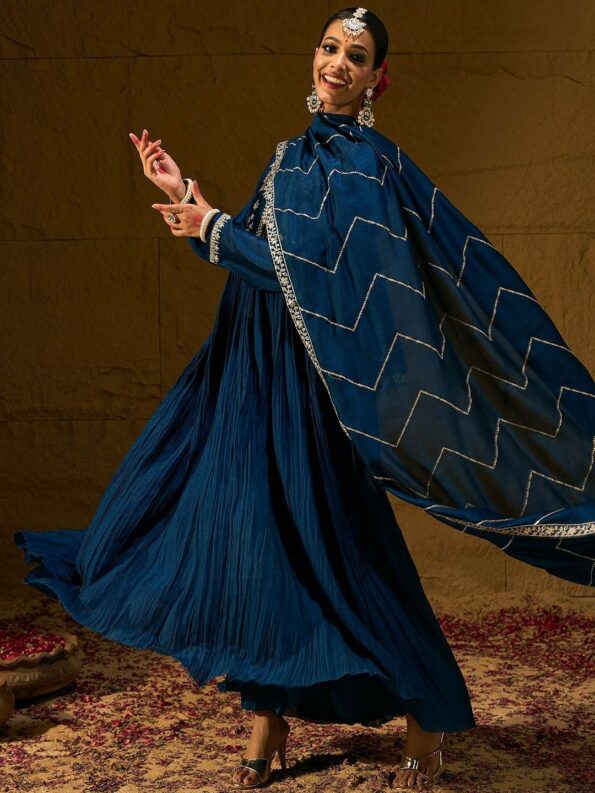 Women Floral Embroidered Anarkali Kurta with Trousers & Dupatta