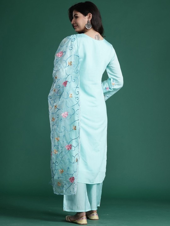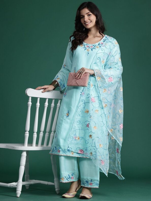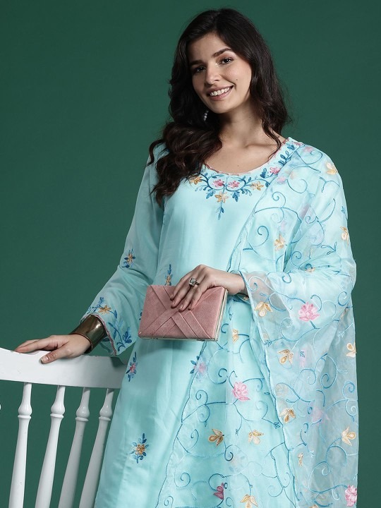 Women Floral Embroidered Regular Thread Work Kurta with Trousers & Dupatta