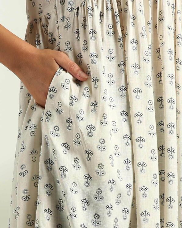 Cotton Ethnic Motifs Printed Mandarin Collar A-Line Midi Dress