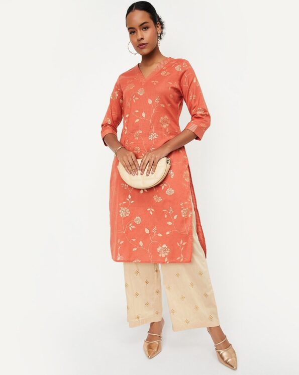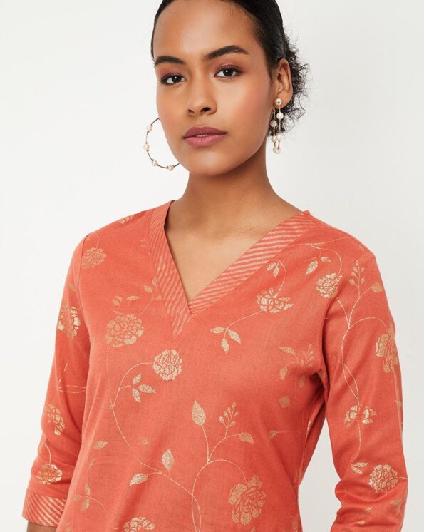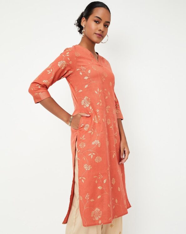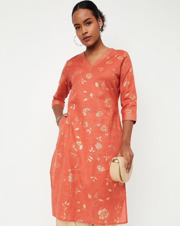 Be the first to review “Women Floral Print V-Neck Straight Kurta”