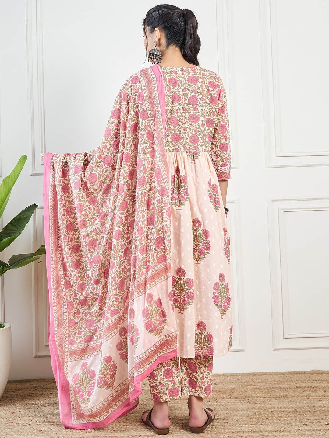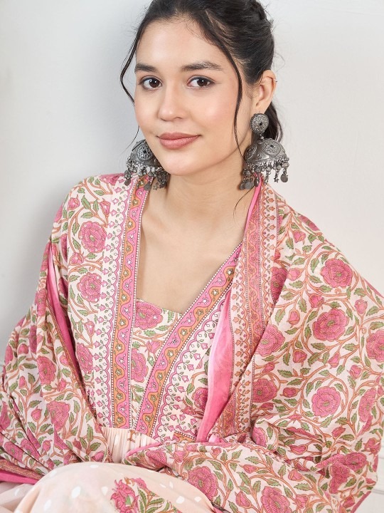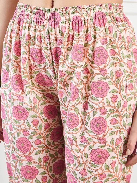 Women Floral Printed Pure Cotton Kurta with Palazzos & With Dupatta