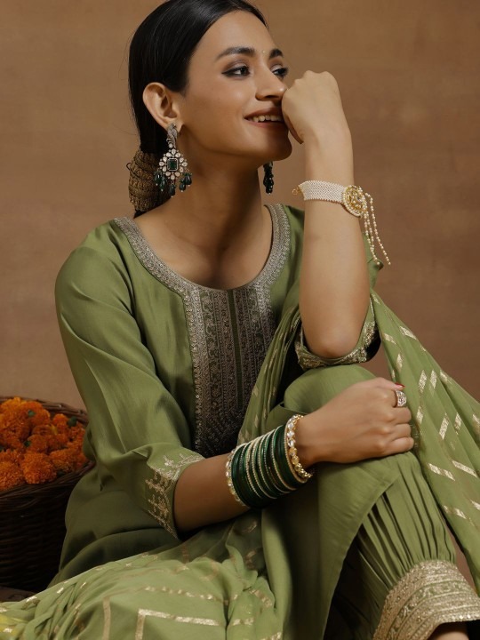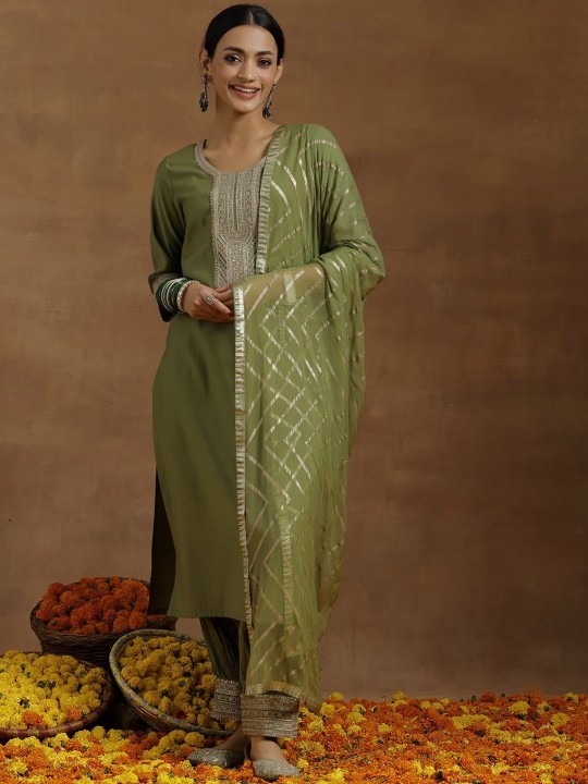 Women Floral Yoke Design Regular Kurta with Salwar & With Dupatta