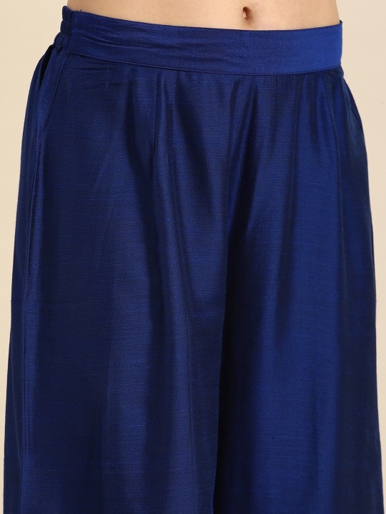 Navy blue solid Kurta with Palazzos with dupatta
