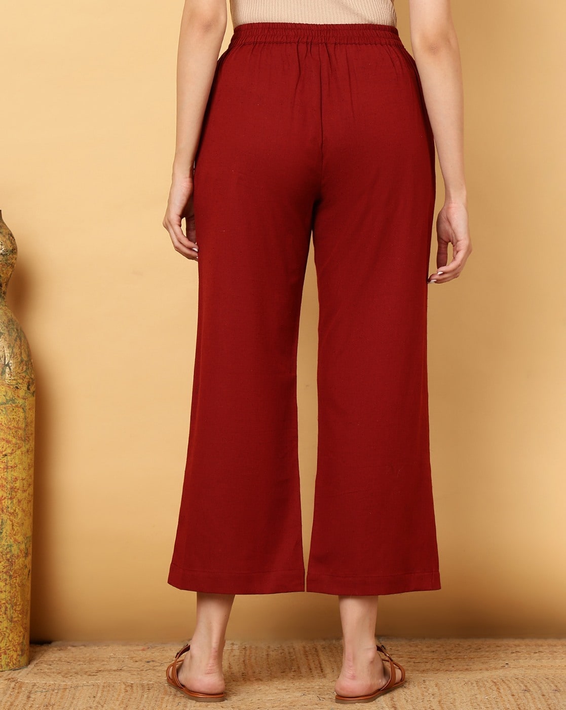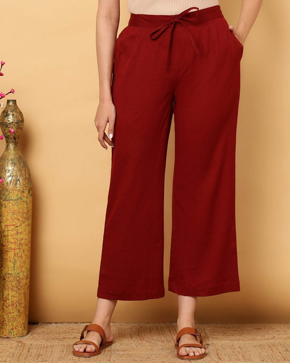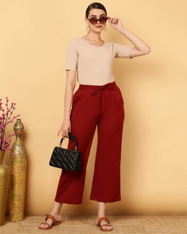 Women Relaxed Fit Palazzos with Drawstring Waist