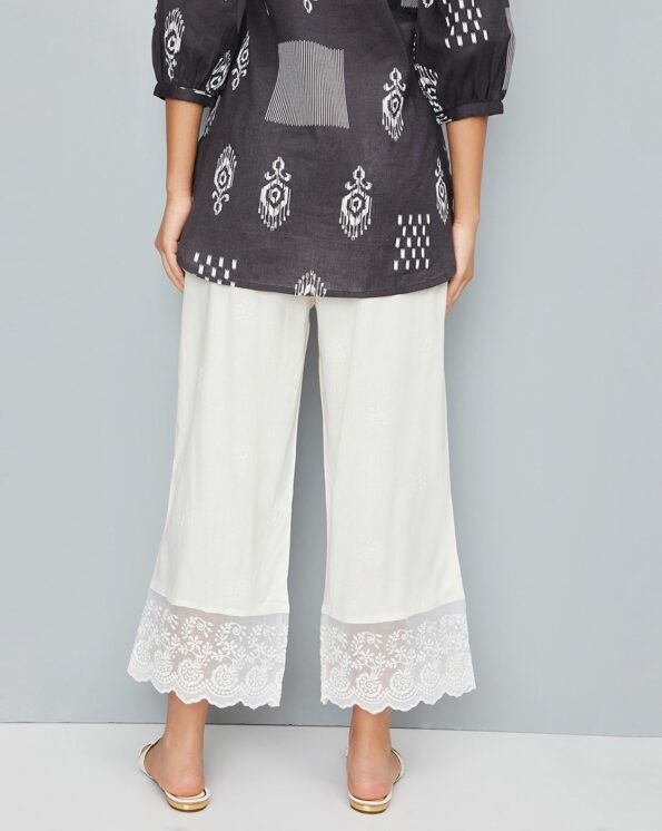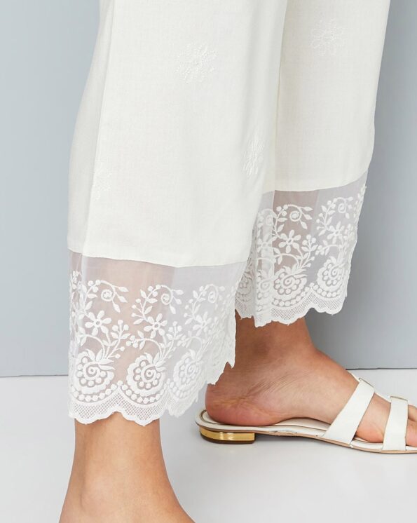 Women Embroidered Palazzos with Lace
