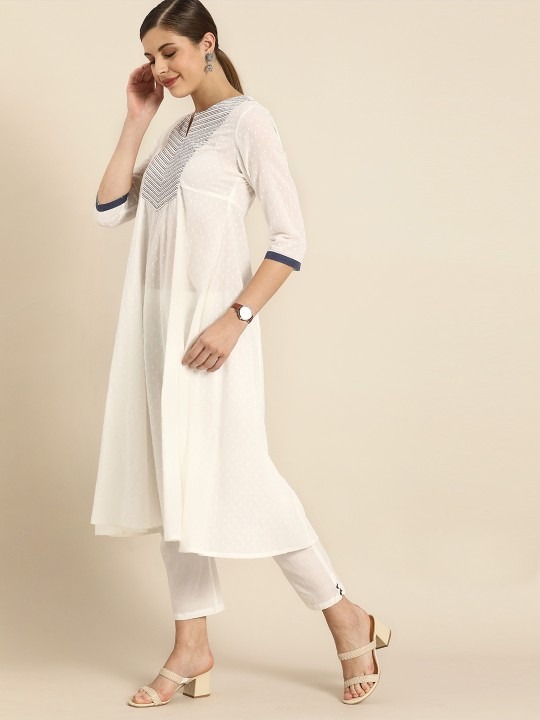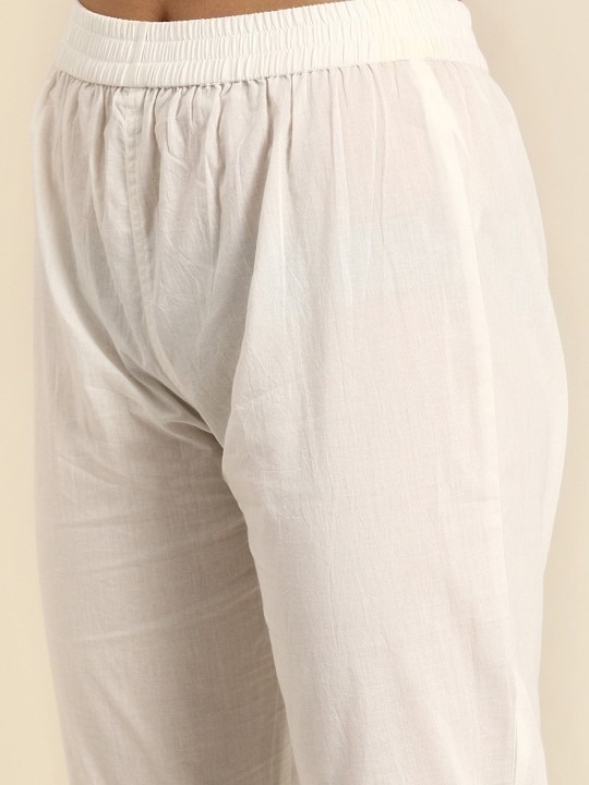 White woven design kurta with trousers