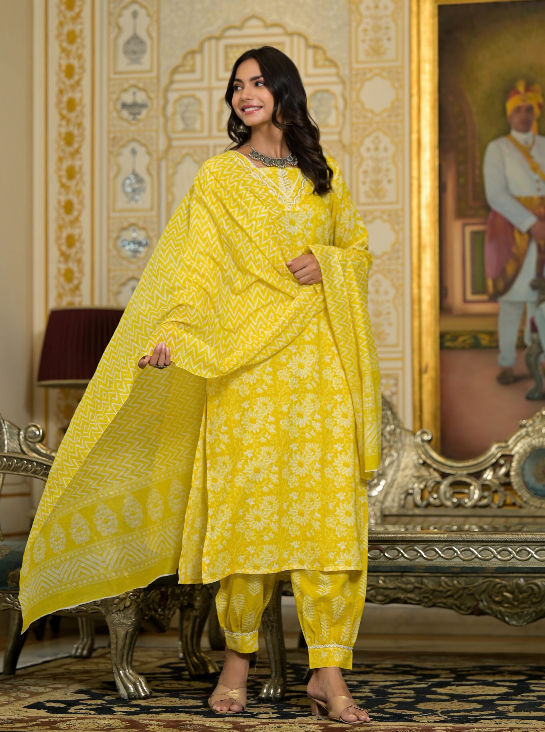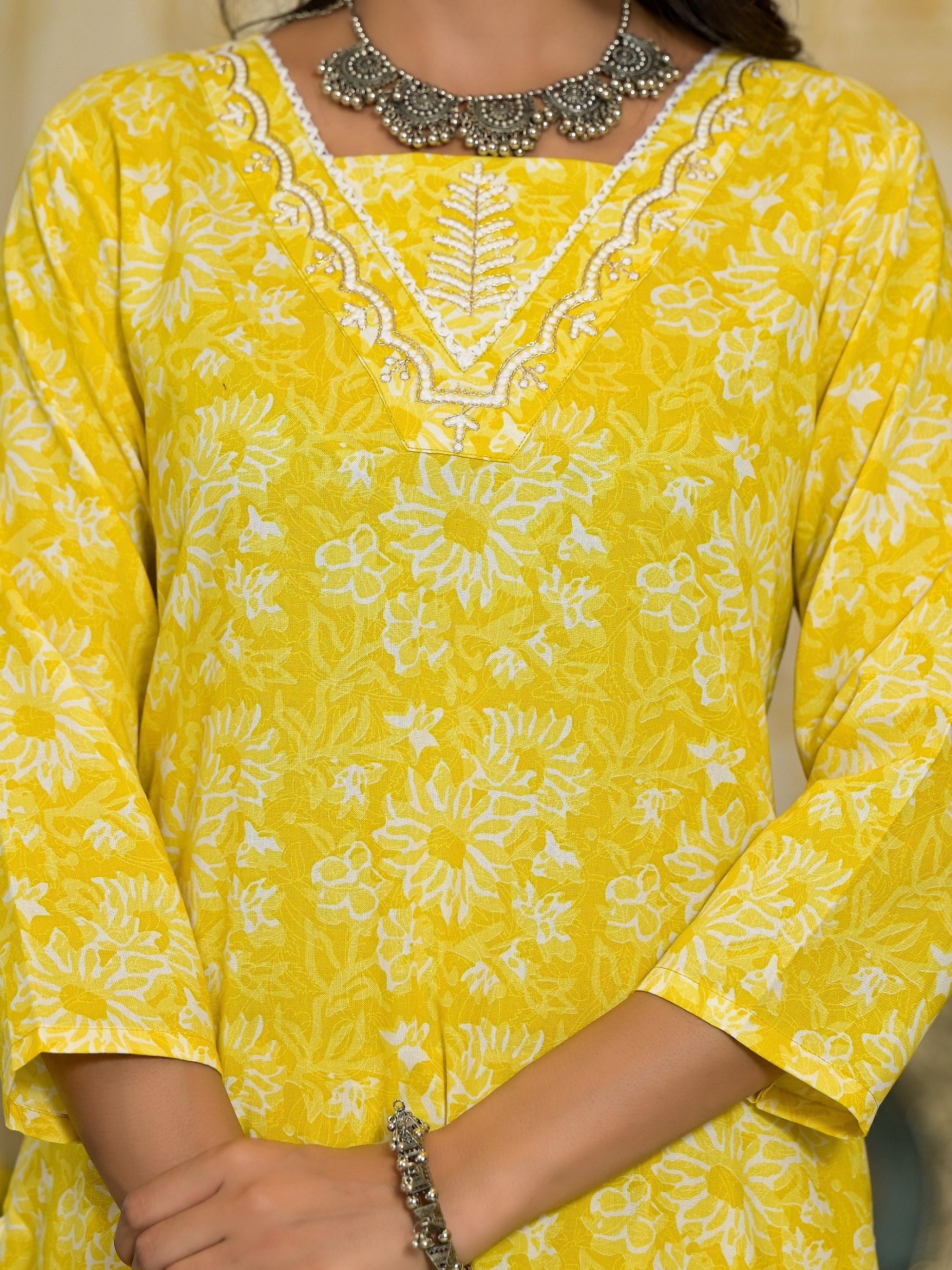 Floral Printed Straight Pure Cotton Kurta with Trousers