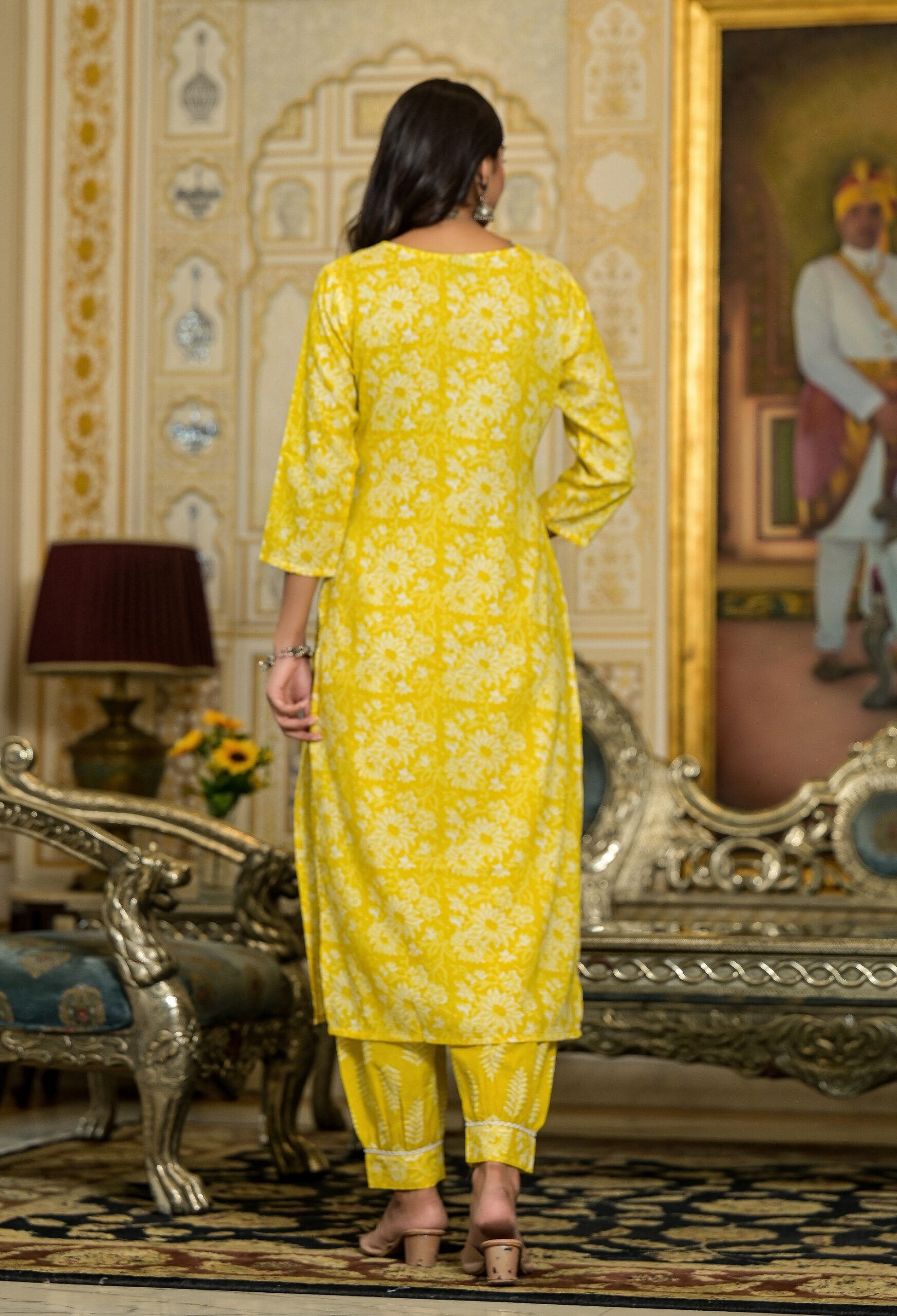 Be the first to review “Women Yellow Embroidery Viscose Rayon Kurta, Pant And Dupatta Set” Cancel reply