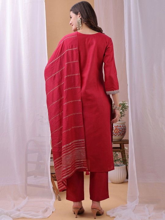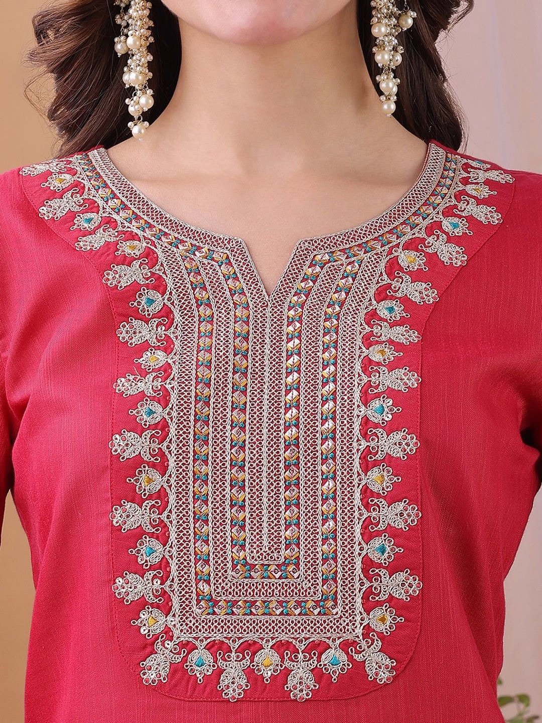 Yoke Design Zari Work Straight Kurta With Trouser And Dupatta