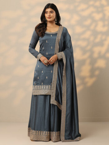 Floral Embroidered Zari Kurta with Palazzos & With Dupatta