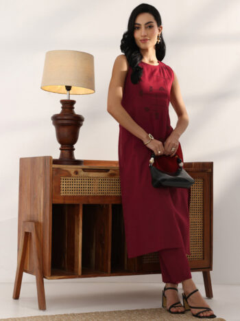 Maroon and gold colored Kurta