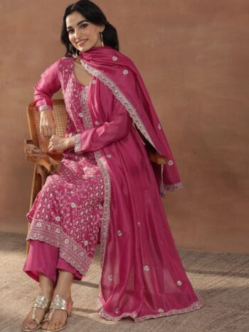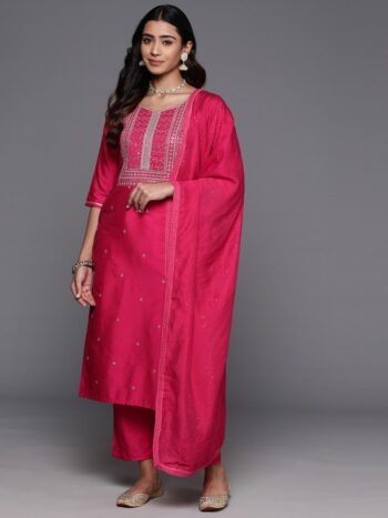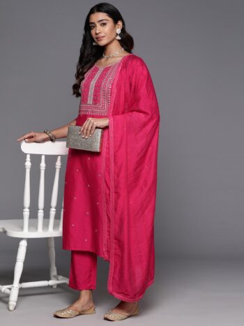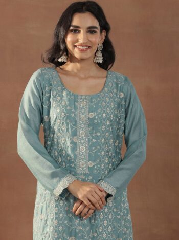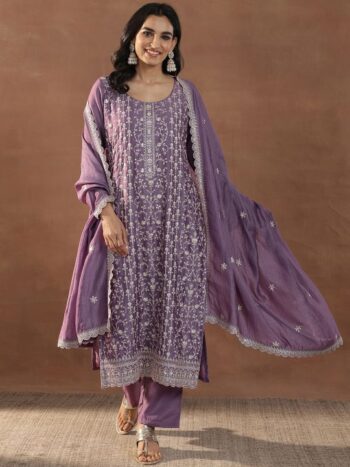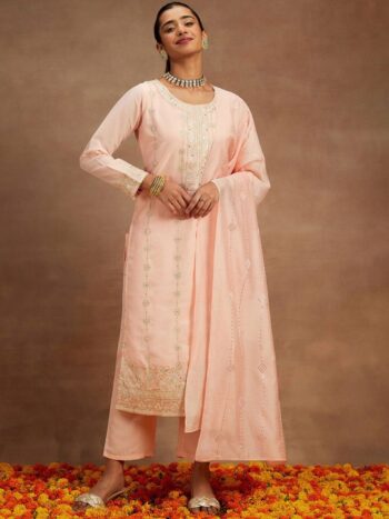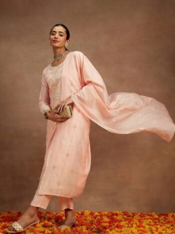 Sequinned Straight Kurta With Trousers & Dupatta