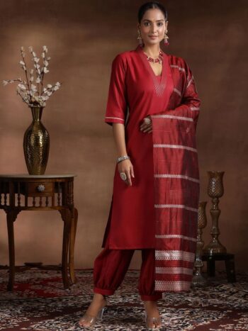 Ethnic Motifs Embroidered Regular Sequinned Kurta with Trousers Dupatta