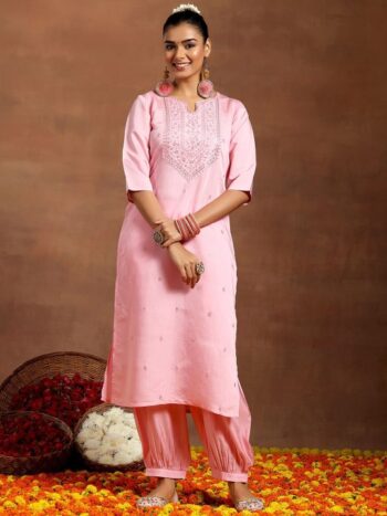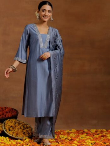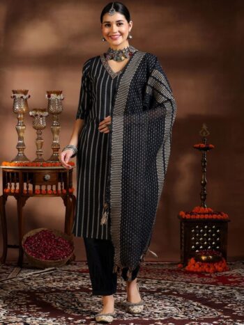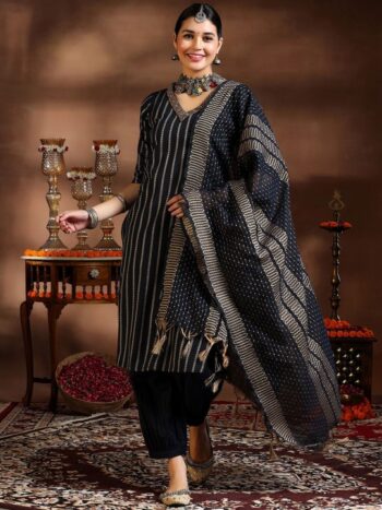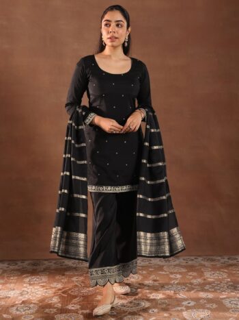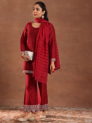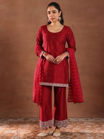Chevron Embroidered Regular Thread Work Kurta With Palazzos & Dupatta