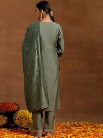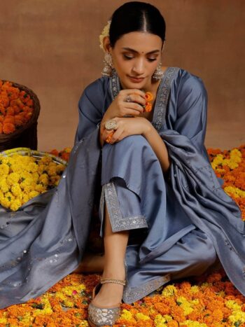 Ethnic Motifs Yoke Design Regular Sequinned Kurta With Trousers & Dupatta