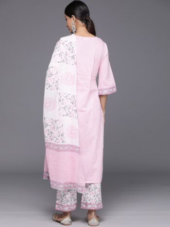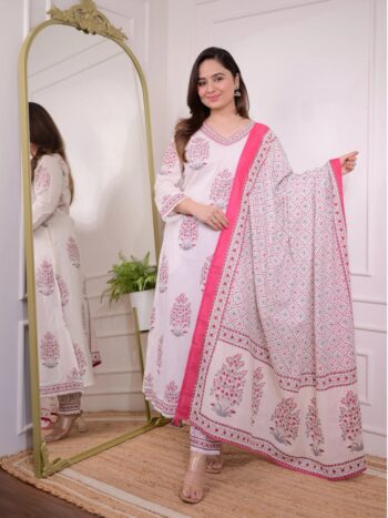 Women Pink Anarkali Kurta And Pant Set With Dupatta