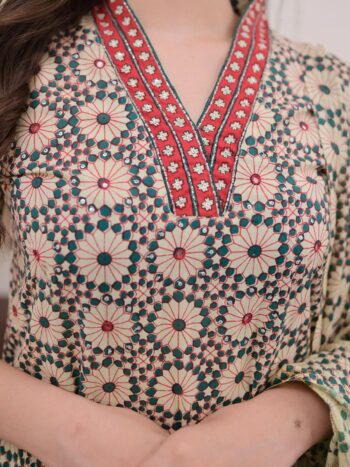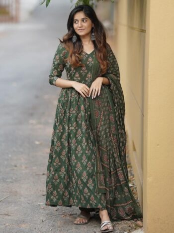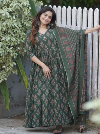 Women Green Anarkali Kurta And Pant Set With Dupatta