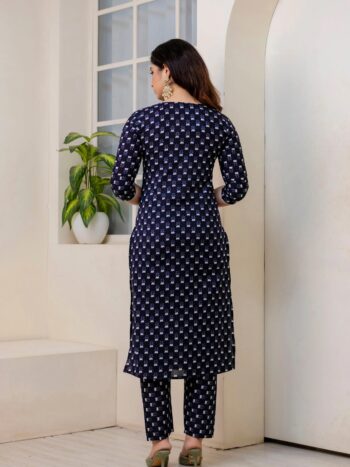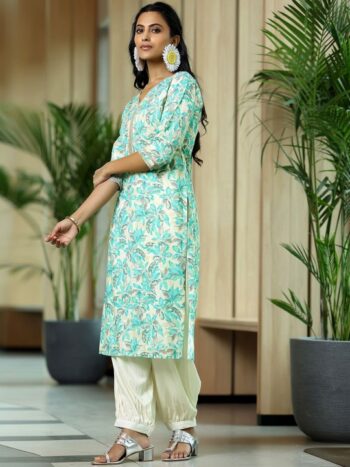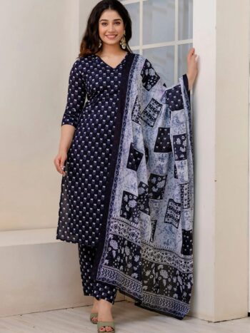 Women Viscose Floral Printed Blue Kurta And Pant Set With Dupatta