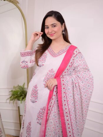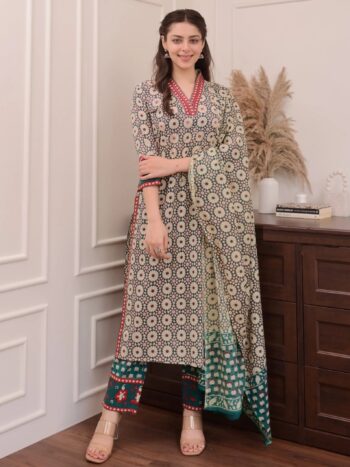 Women Viscose Printed A-Line Kurta And Pant Set With Dupatta